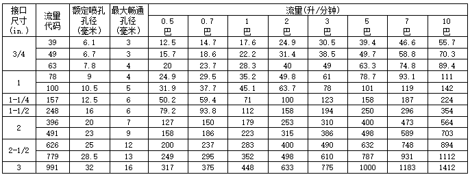 以上列出的最大畅通通道直径表示的是能够通过通道且不会发生堵塞的外来颗粒的最大直径 外形尺寸: