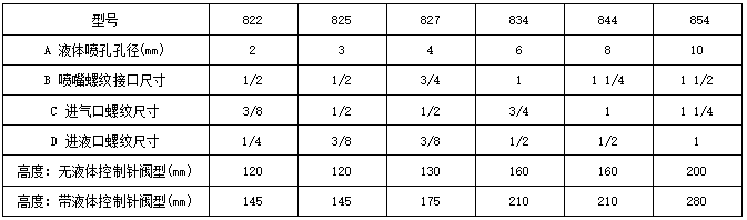 • 无液体控制针型特别适用于高粘度液体的雾化。