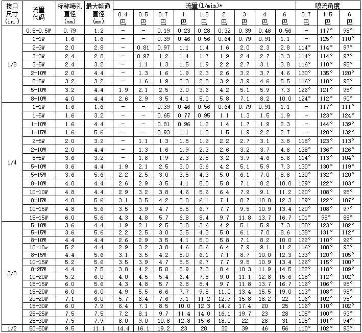 • AA-W系列喷嘴为外螺纹,A-W系列喷嘴为内螺纹。